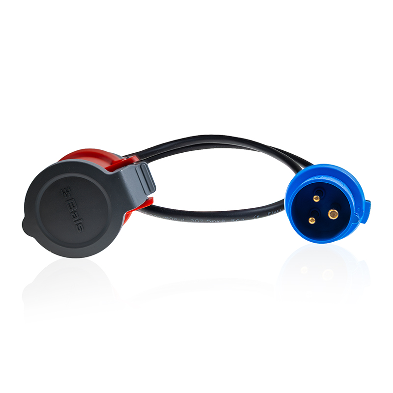 Do you like camping? We have an adapter for you which will make your life with an electric car easier. Thanks to this adapter, you can charge your electric car in campsites and ports, where a blue CEE 3-pin 16A camping socket is used. You can adapt the end of the CEE 5-pin 16A 400V pin smart portable charger to a CEE 3-pin 16A 230V camping socket, so you can use the camping sockets.