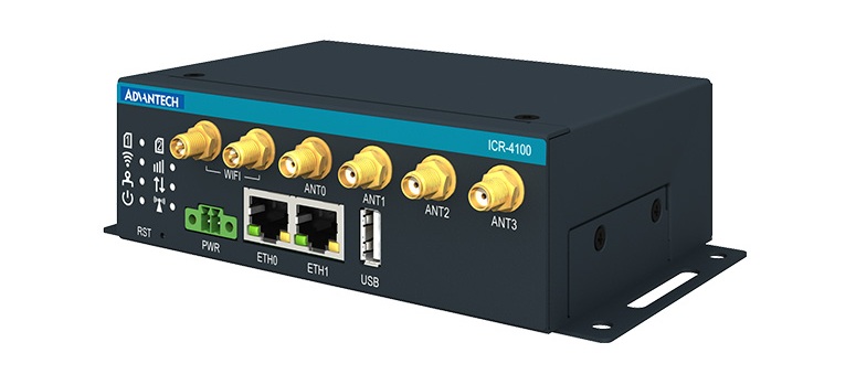 The router runs on the Linux-based ICR-OS operating system, allowing users to install custom Python scripts or use ready-made applications from the Advantech Router Apps library. Entire router networks can be centrally managed, configured, and monitored using the WebAccess/DMP cloud platform.