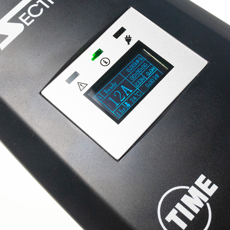 Nabíjecí stanice nabízí praktický displej OLED, který zobrazuje odebíraný proud, napětí, aktuální nabíjecí výkon, teplotu nabíječky, čas nabíjení a již dobitou energii do automobilu.