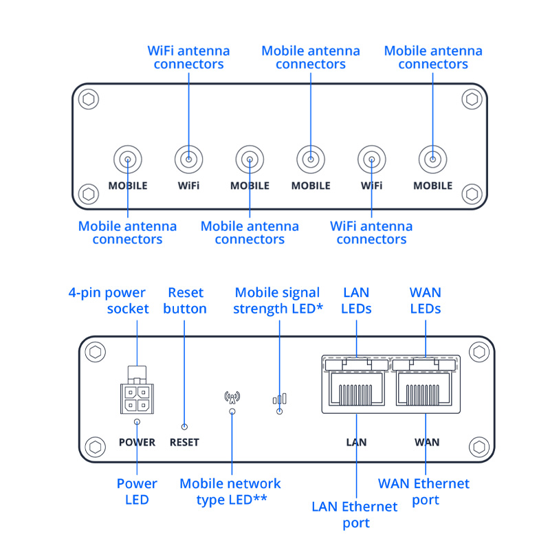 5G router nabízí špičkový výkon a kompaktní rozměry. Díky pokročilé technologii 5G Sub-6GHz umožňuje stahování dat rychlostí až 3,4 Gbps. Je vybaven modemem Telit, který zajišťuje maximální globální pokrytí. lit. Pro přenos dat disponuje také dvoupásmovou Wi-Fi 5 a dvěma gigabitovými Ethernetovými porty.