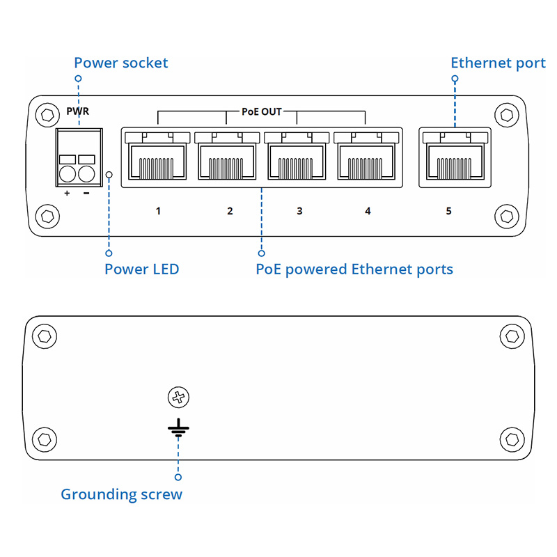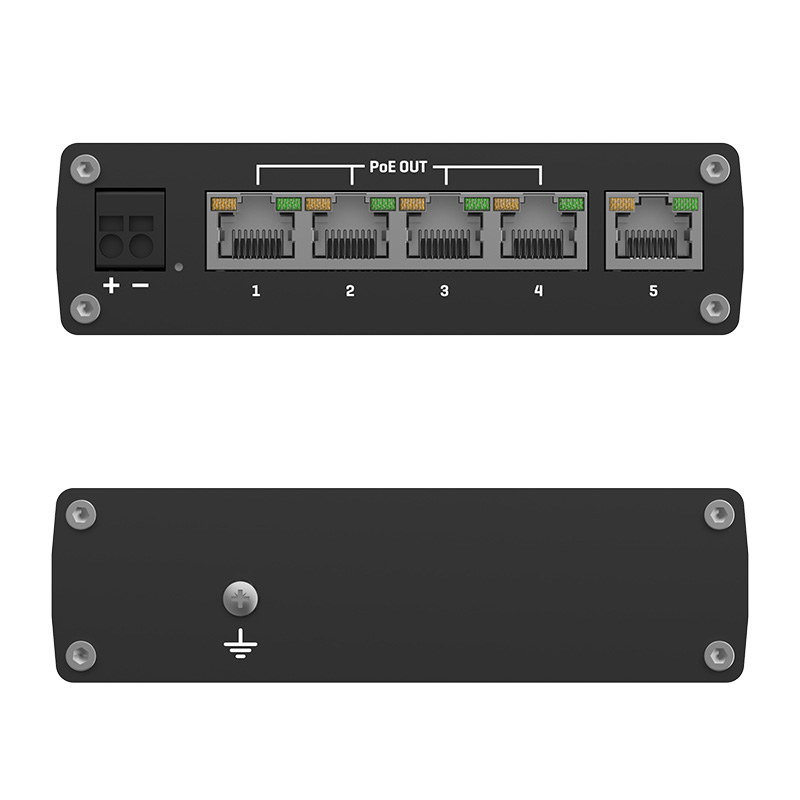 Ethernet switch PoE Teltonika TSW101 slouží jako napájecí zdroj (PSE), umožňuje centralizaci napájení – poskytuje až 30 wattů na jeden port a maximální výstupní výkon 60 wattů.